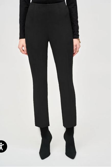 Pantalon à enfiler en daim scuba, jambe évasées élégantes dotées de couture et de fentes élégante sur le devant.
