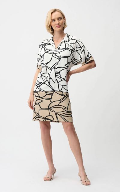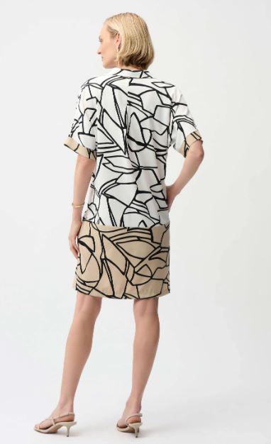 Robe en tissu recyclé avec un imprimé abstrait fluide, des manches dolman à la longueur du coude.