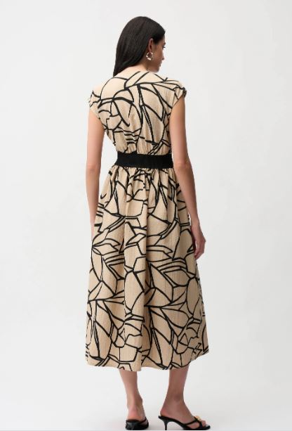 Robe en tissu gaufré à imprimé abstrait présente une fermeture éclair élégante à l’avant,