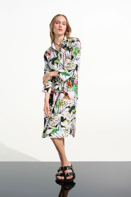 Robe chemisier imprimé tropical présente une texture légère et subtile, avec des détails pratiques,