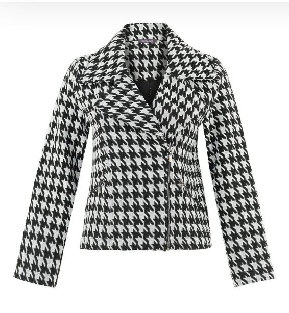 Veste motif « Pied-de-poule » noir et blanc, moderne et chic.